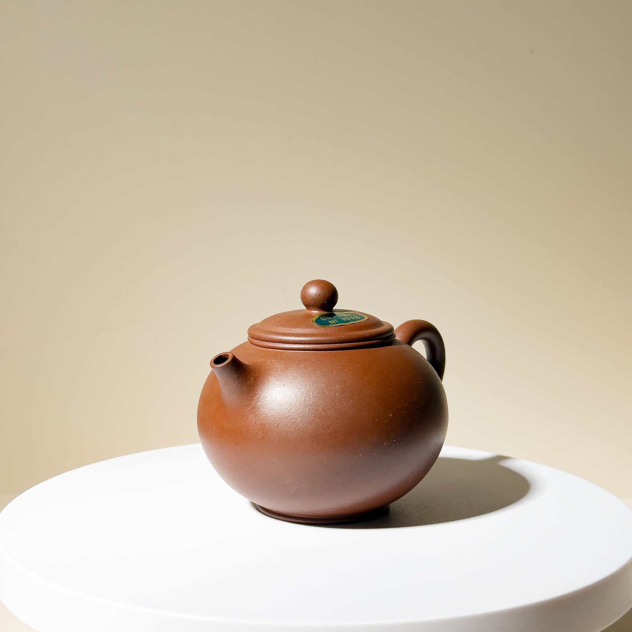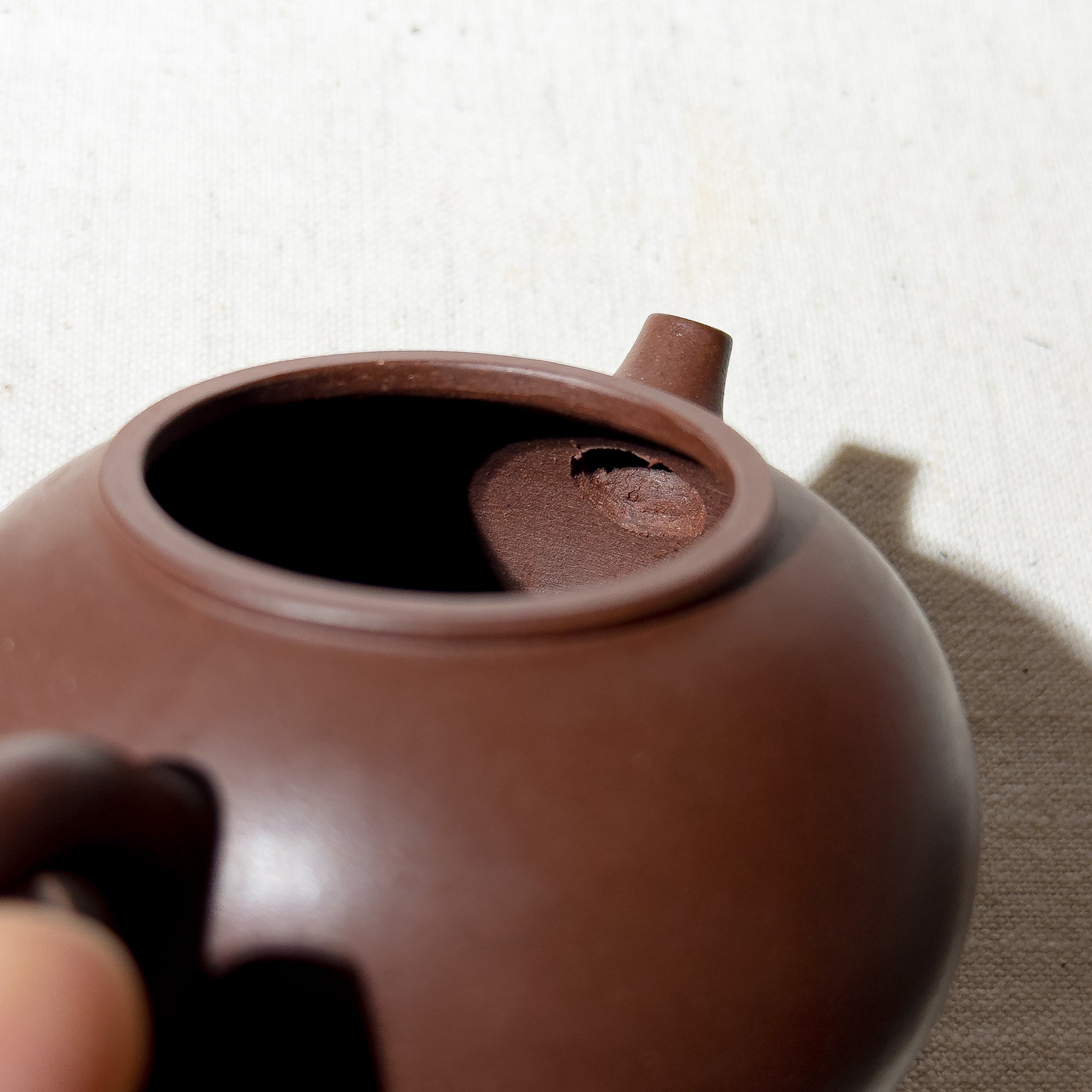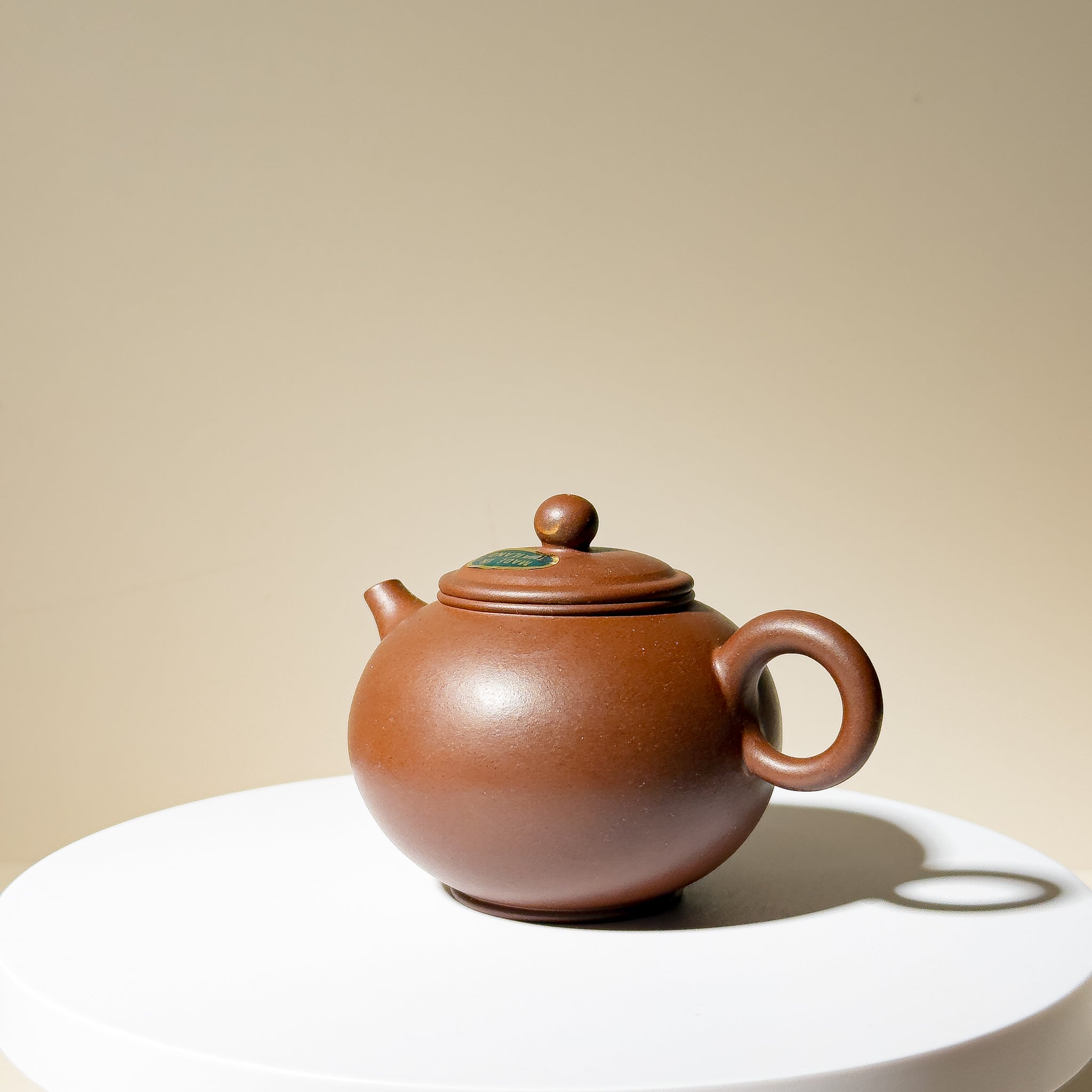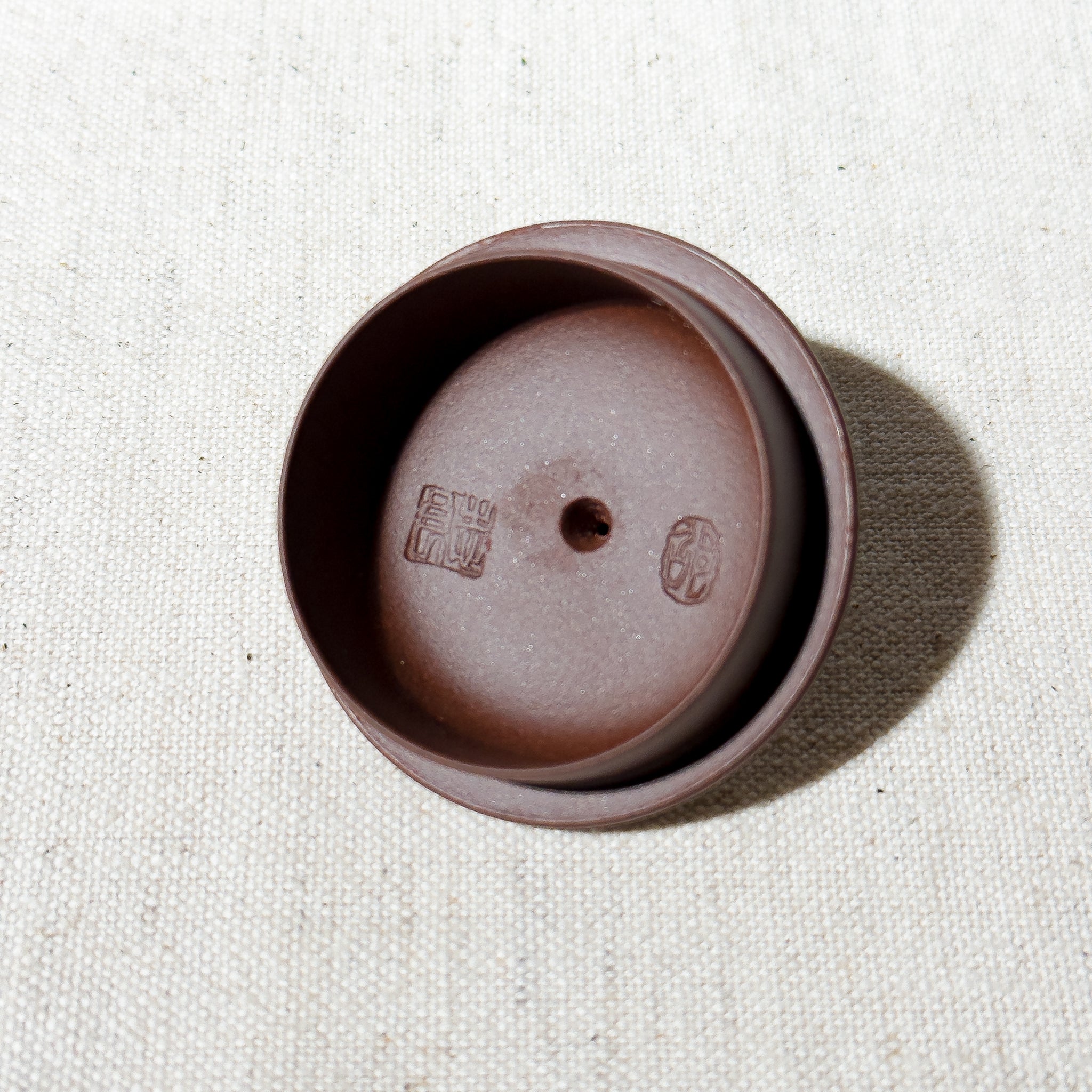 All pieces from this batch remain unused and still retain the original thin layer of protective wax applied at the factory. This wax served to protect the surface from dust and fingerprints during storage and transport, while giving the new teapot a subtle, nurtured sheen. This slightly warm, tea-toned gloss was highly appreciated at the time. The wax can be gently removed with hot water and a soft cloth, revealing the original matte, velvety Zisha texture underneath.