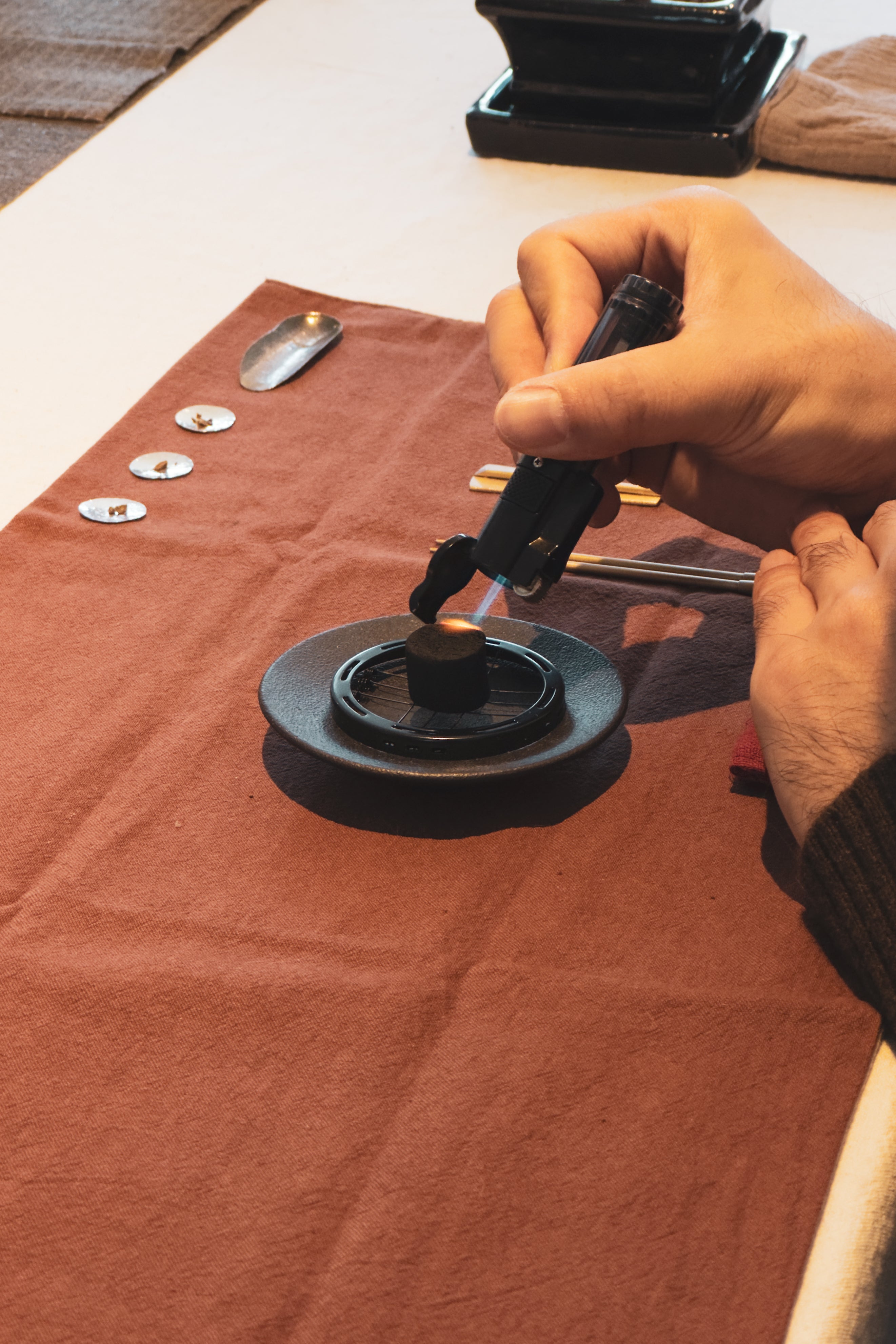 In this traditional ceremony session, we use only rare aromatic wood pieces and do not use powder or incense sticks, but they might be available for other sessions to experience.